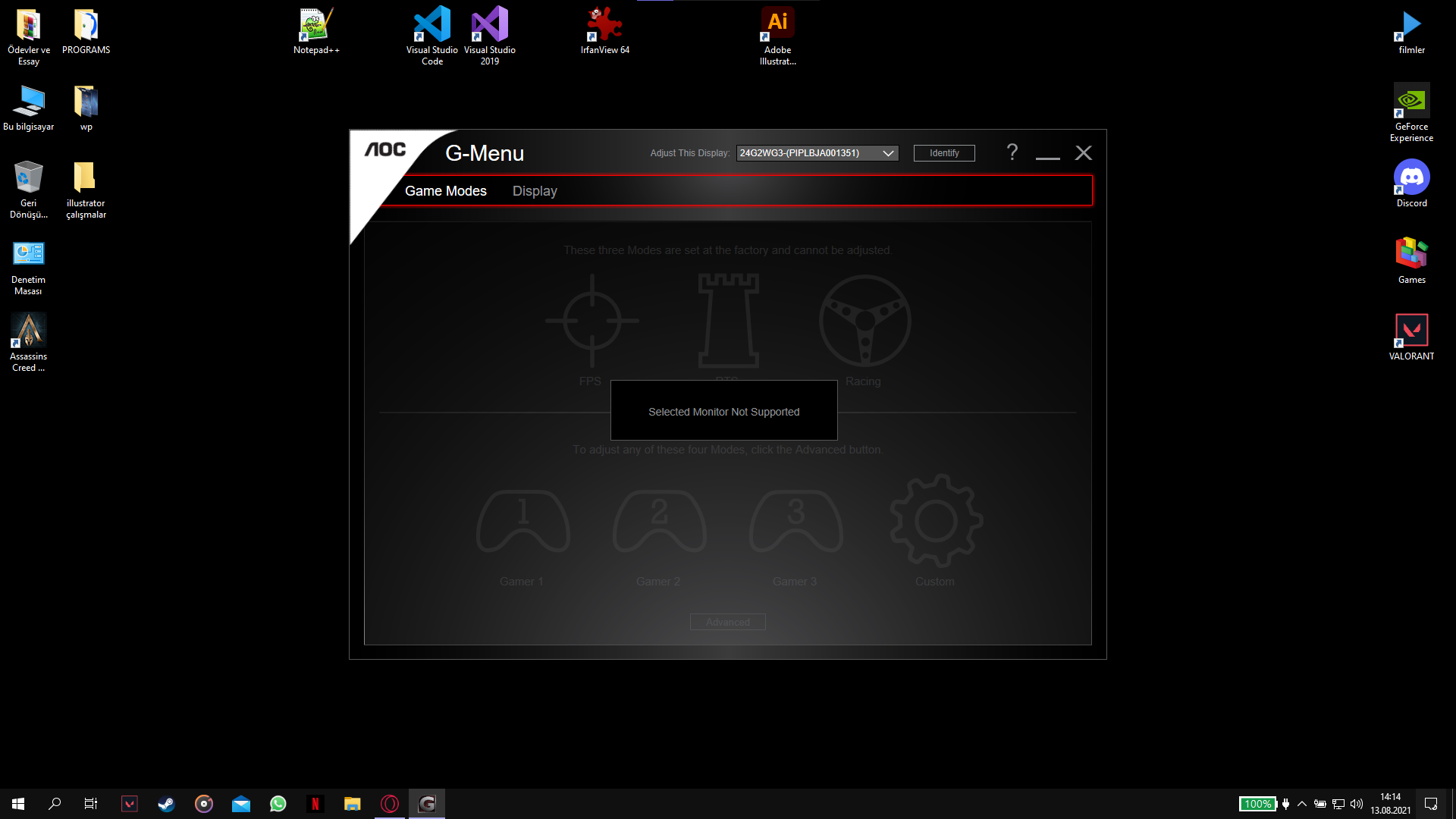 AOC 24G2U/BK G-Menu Not Supported hatası