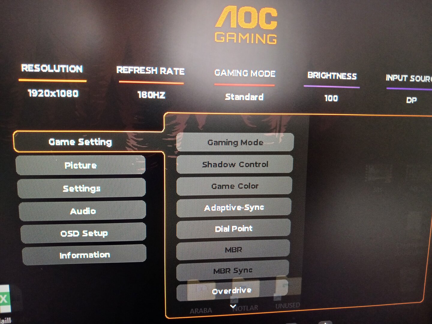 Sadece Adaptive Sync, dial point ve OverDrive ayarları değiştirilebiliyor diğerleri pasif durumda.