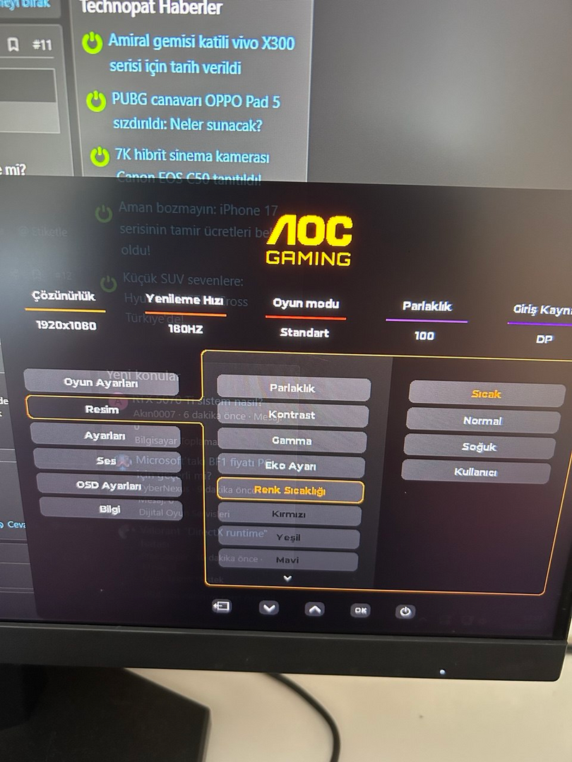 Hocam merhaba aynı monitöre sahibim ama benim monitör beyazları sarımsı gösteriyor sizde de öyle mi?