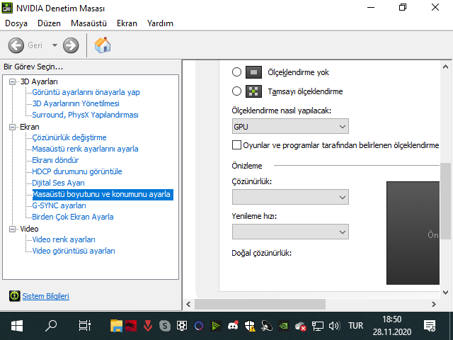 AOC C24G1 nonitöre DP ile bağlandığı zaman çözünürlük değiştirilmiyor