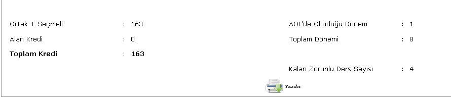 Dört tane zorunlu dersiniz kalmış. AÖL sekmeler kısmının fotoğrafını atabilir misiniz? Size yardımcı olayım. Oradan derslerim kısmında dönem dersleri diye bir seçenek var, almak zorunda olduğunuz dersleri oradan görebilirsiniz ve 163 krediniz var. Sadece 4 dersi alsanız, krediyi fazlasıyla aşarsınız. Ekstradan ders seçmenize de gerek yoktur. OBP'yi yükseltmek adına, yapabileceğinizi düşündüğünüz kolay seçmeli dersleri seçebilirsiniz. Eğer onlardan düşük alırsanız, OBP'nizi etkileyeceğini de unutmayın. Aklınıza takılan soru varsa çekinmeden sorabilirsiniz. @AdamOlanaÇokBile'nin dediği gibi dersin yanında "Ortak" yazıyorsa o dersi ya başarmalı ya da muaf olmalısınız. Muaf olmak için de bir dersin sınavından, üç sınav kalırsanız muaf oluyorsunuz ve o dersin kredisini alamıyorsunuz ancak Türk Dili ve Edebiyatı dersini başarmak mecburiyetindesiniz, o dersten muaf olamıyorsunuz.