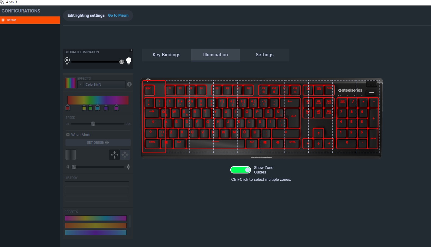 SteelSeries Apex 3 klavyenin Apex 3 yazılımında ekteki görselde klavyenin renk ayarlarını değiştiremiyorum.