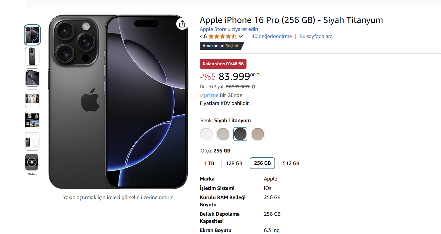 Elektronik Apple iPhone 16 Pro 83.999 TL