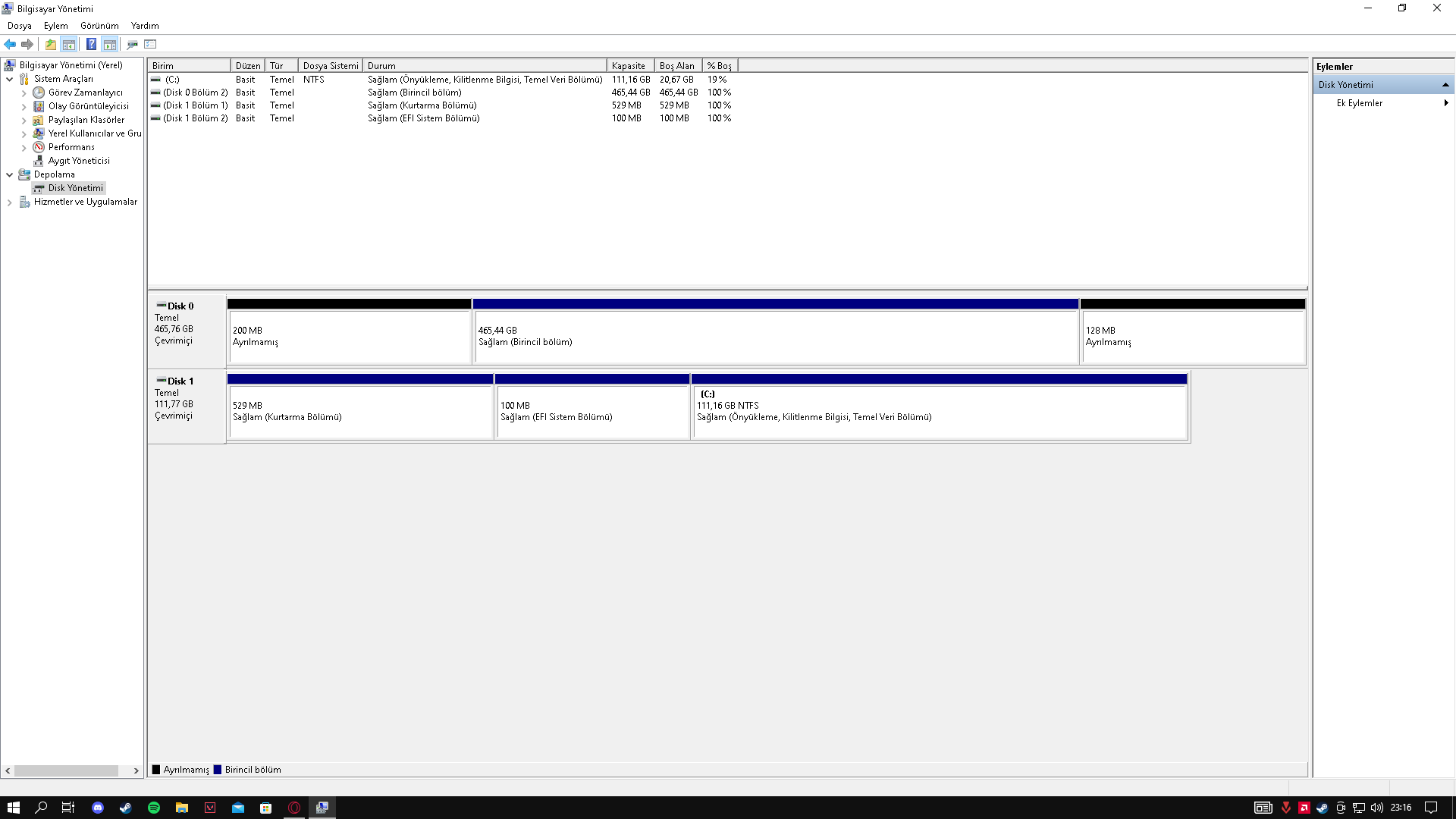 465 GB olan Apple hard diski, diğeri normal kullandığım SSD.