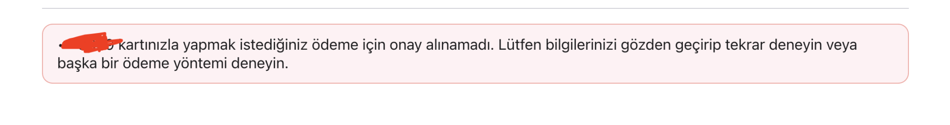 Apple Store'da ödeme yapmaya çalışırken böyle bir hatayla karşılaşıyorum. Neden olabilir? Hem fiziksel hem sanal kart denedim, işe yaramadı. Teşekkürler.