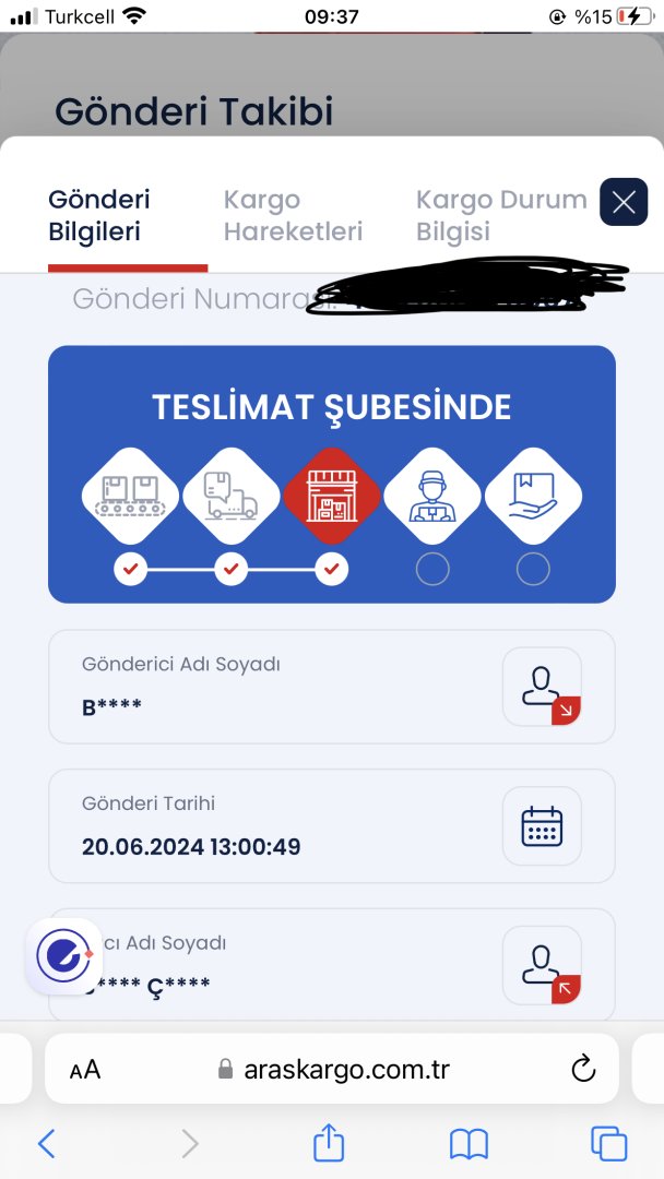 Kargo geri gitmiş sözde 5-6 kere dağıtıma çıkarmışlar evde yokmuşumda almamışım. Her gün evdeyim ne aradılar, ne kağıt bıraktılar, ne sitelerinde bir şey gözüküyor cidden Aras Kargo'yla kargo yapılmaz. Yurtiçinde ne güzel almayınca 3 kere dağıtıma çıkmıştı.
