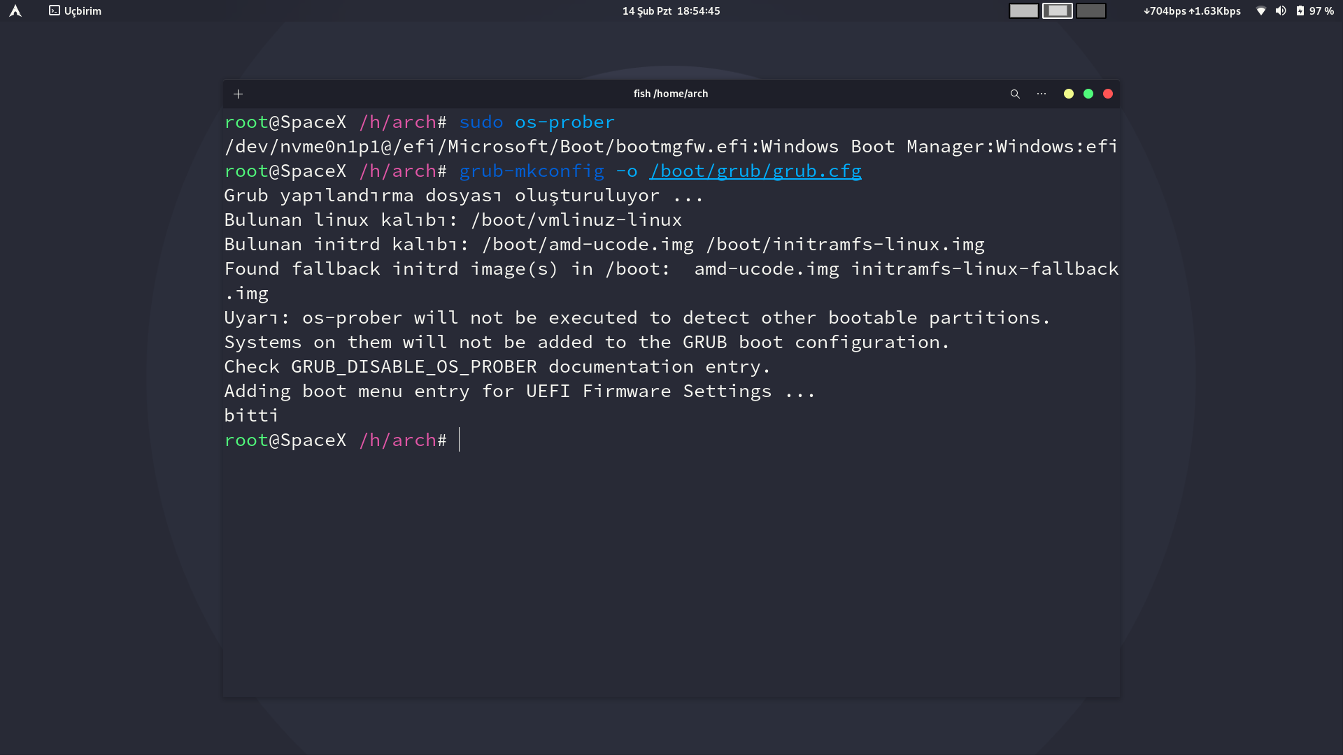 Merhabalar. Normalde dert etmedim ama sonrasında "Bari Grub'da Windows olsun Arch Linux'a girmek için zaman kaybetmeyeyim." dedim.