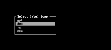 cfdiskYazıyoruz ve dos seçiyoruz. Bölümleme ile iligi daha fazla bilgi almak için archwikinin şu sayfasına bakabilirsiniz.