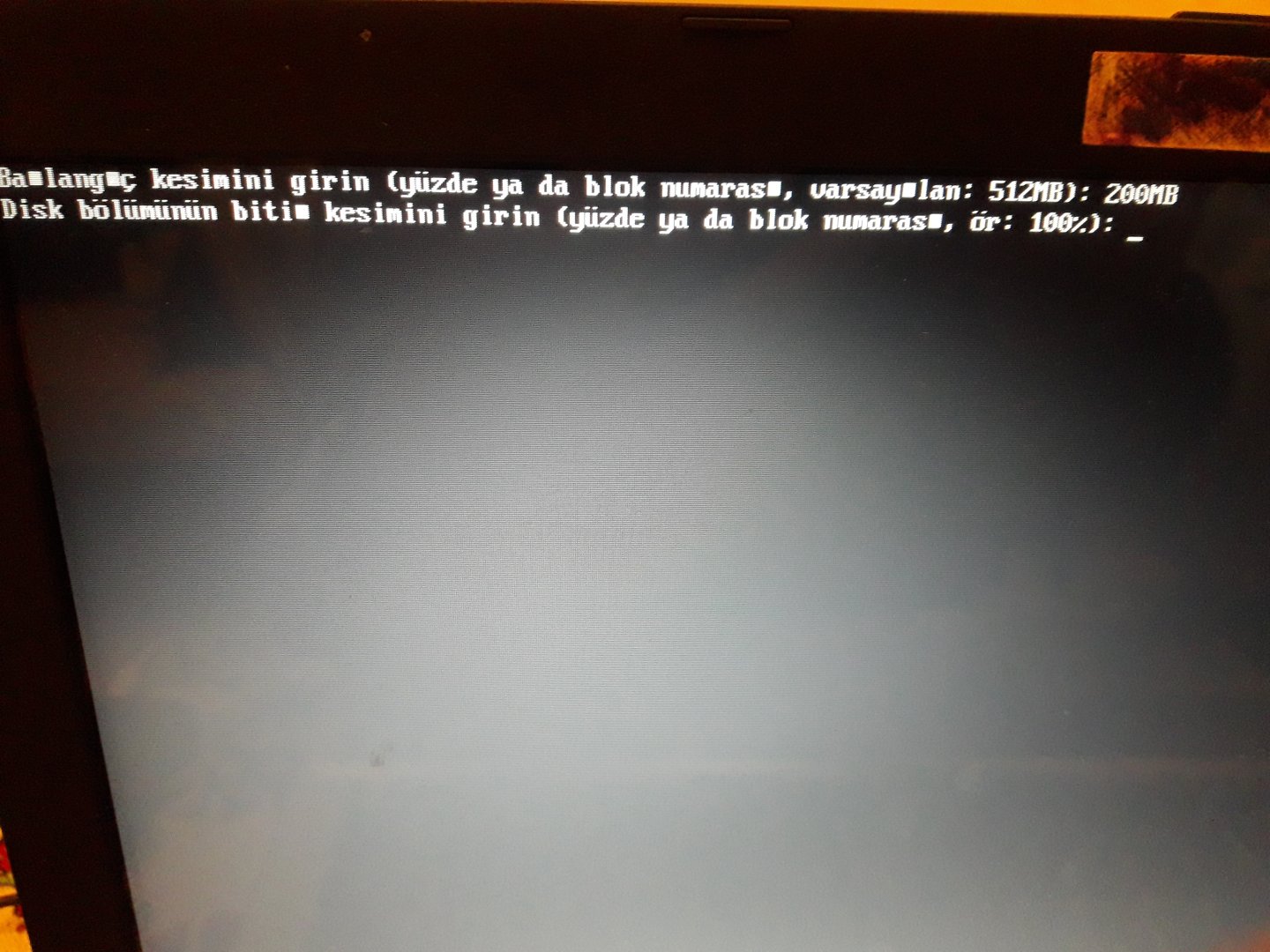 Birşey yazmadan enter'a basın. Olmazsa "200M" veya "200MiB" falan yazmayı deneyin.