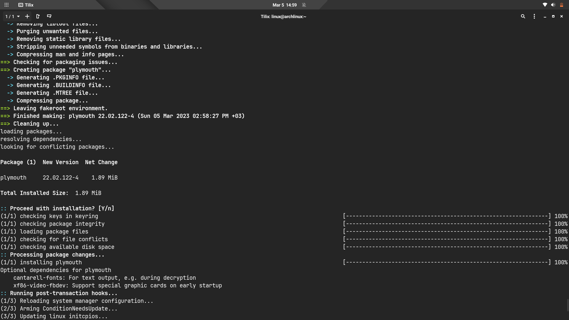 paru -S plymouth