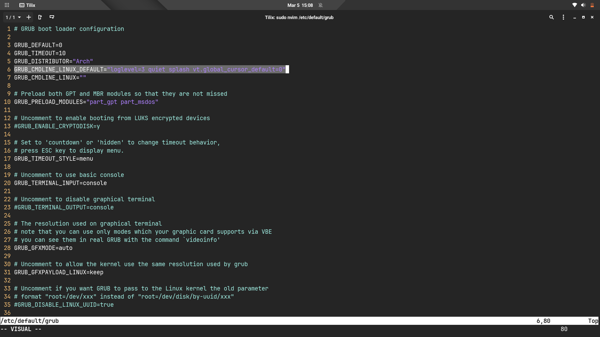 /etc/default/grub | GRUB konfigürasyonunu hazırlıyoruz​
