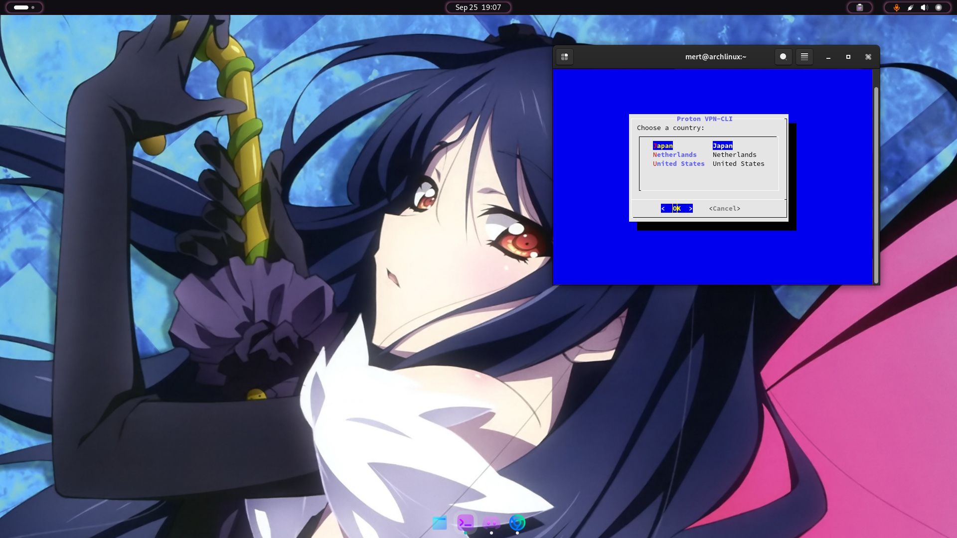 paru -S protonvpn-cliVe Proton VPN'i indirdik sadece calistirmasi kaldi.