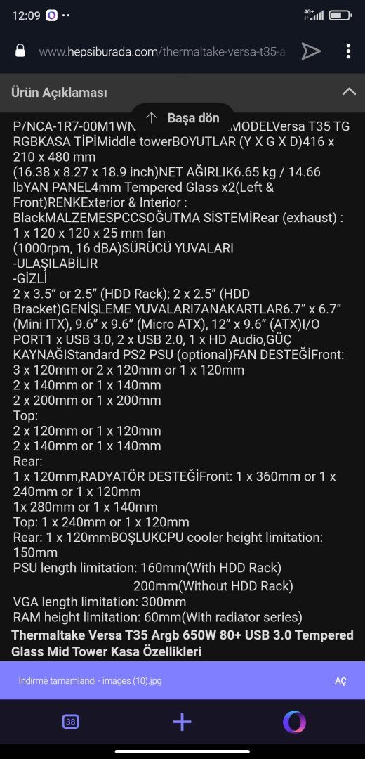 Arkadaşlar Arctic 34 ya da ID 224 XT ARGB soğutucu alacağım. İkisi de tek fanli olacak. Bunlar Thermaltake T35 kasama siğar mi? Açın bakın diceniz de anlamıyorum. Kasamin özellikleri fotoda.