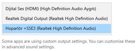 - Windows ta ses böyle olmalıdır:
