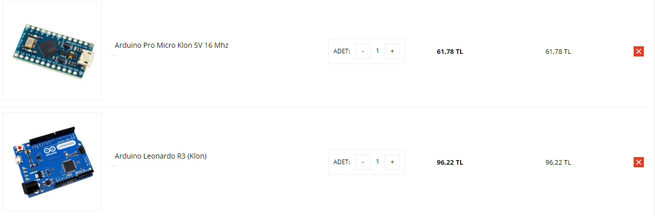 Robotistan'ı sık kullanıyorum aslında ama Pro Micro'nun diğer yerlerden ucuz olmasına şaşırdım, bu arada Leonardoyu ElektroVadi'den alabilirsiniz eğer bütçenizi aşmıyorsa; (Site güvenilir, Ankara'da yaşıyorsanız yerleri var oradan da alabilirsiniz.)