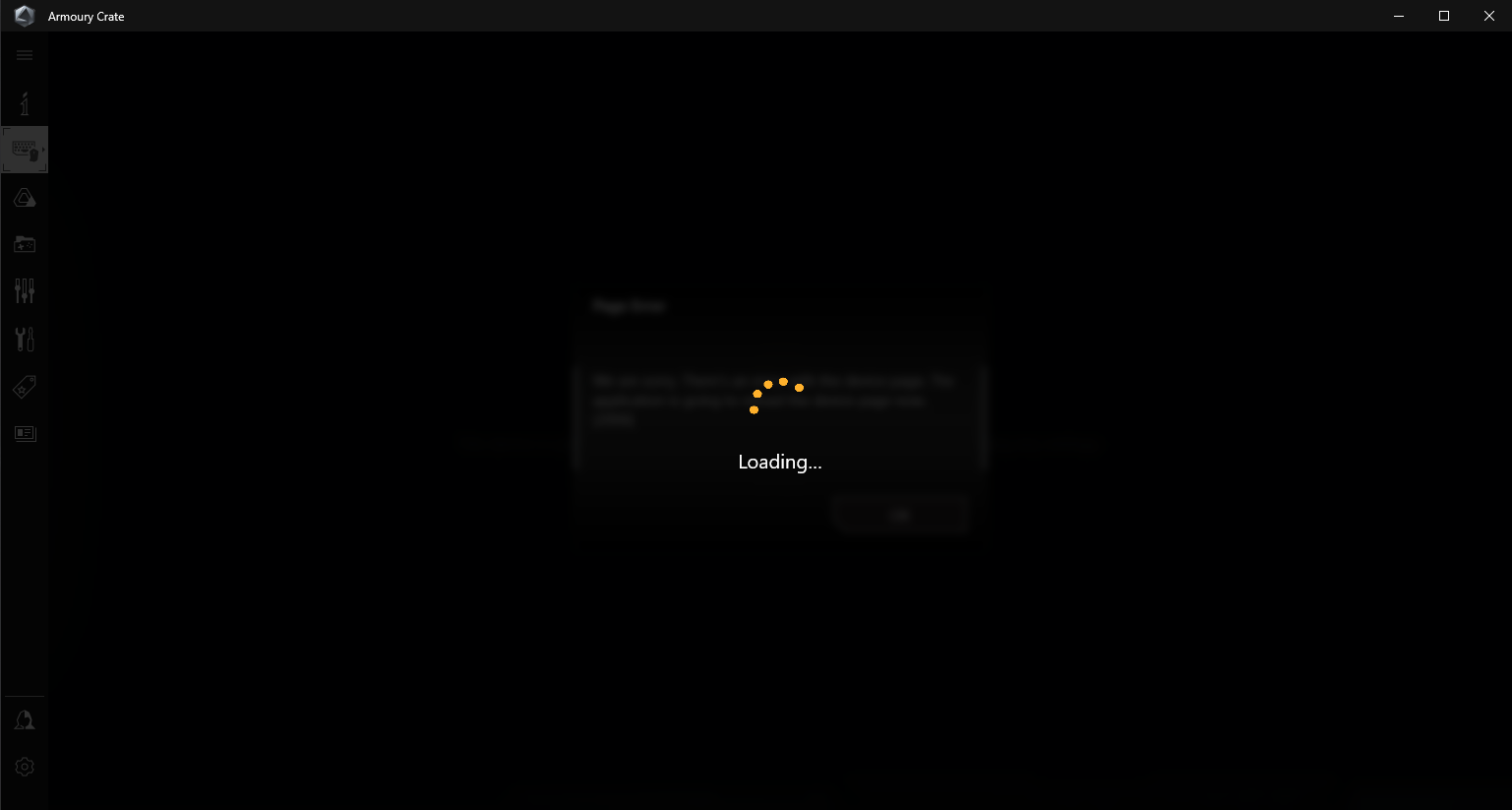 Yaklaşık 4-5 aydır ASUS TUF K5 klavyem, M5 Mouse'um ve ROG 2060 ekran kartım için Armoury Crate'i kullanıyorum, mouse ayarları vs. yapabiliyorum ancak klavye ayarlarına ne zaman tıklasam ekran böyle kalıyor ve uygulamada farklı bir yere tıklanmıyor. Klavyenin ayarlarına erişemiyorum, ayrıyeten bir arkadaş yeni profil açılınca düzelebileceğini ifade etmişti; ikinci görselde yeni profil açtığımda cihazlarda klavye görünmüyor...