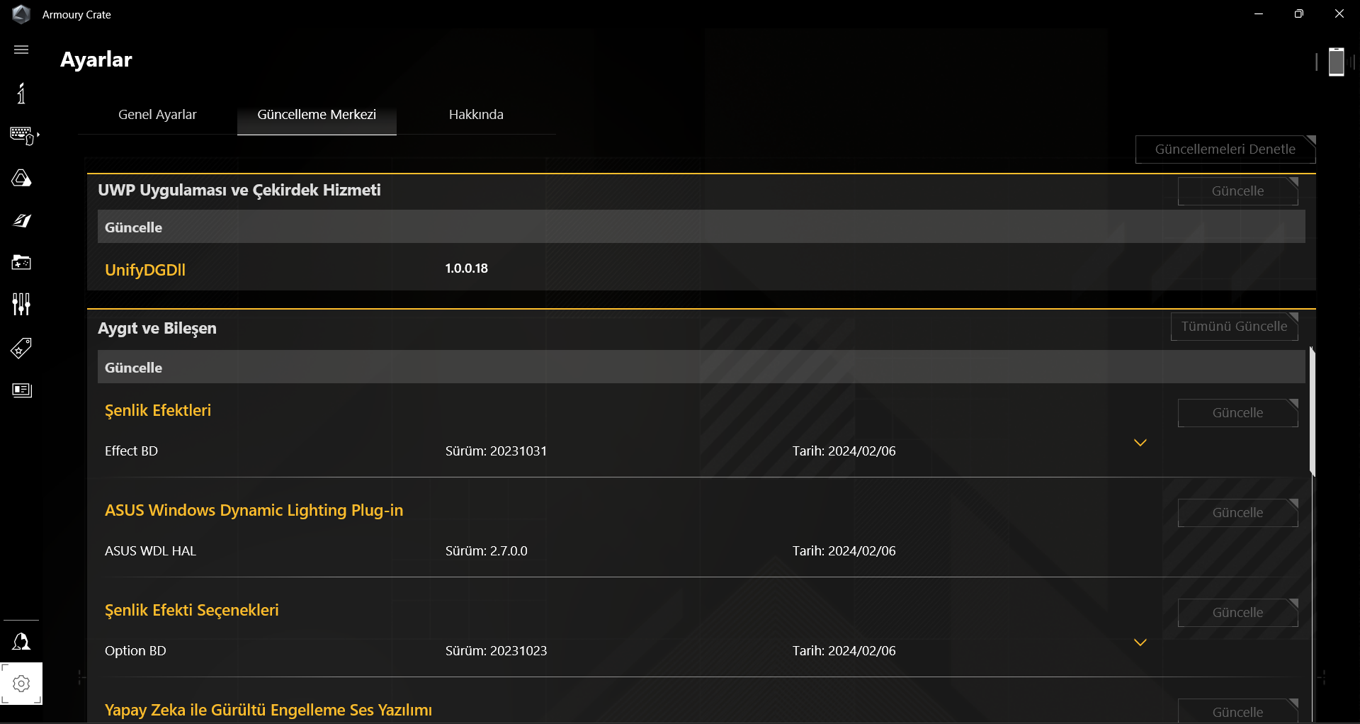 Görseldeki gibi güncelle butonuna basıp biraz bekledim ve bu halde kaldı, güncelle butonuna basılmıyor. Cihazım TUF F15.