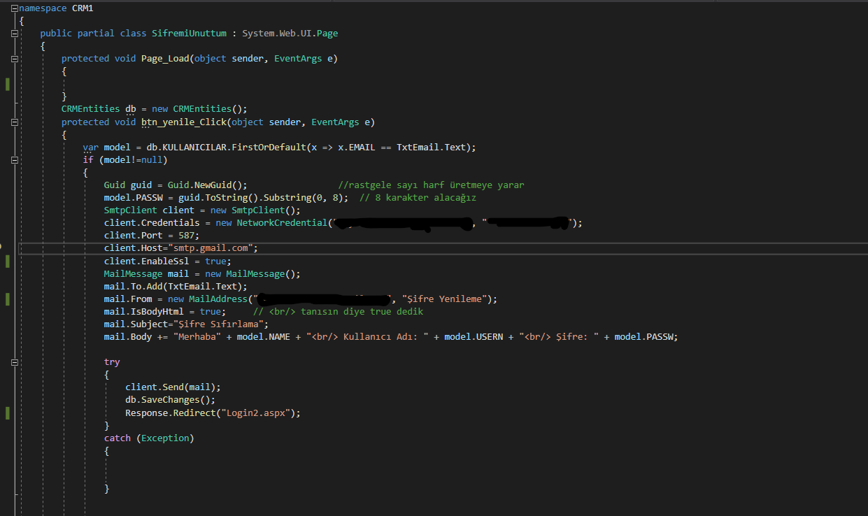 Asp.net şifremi unuttum