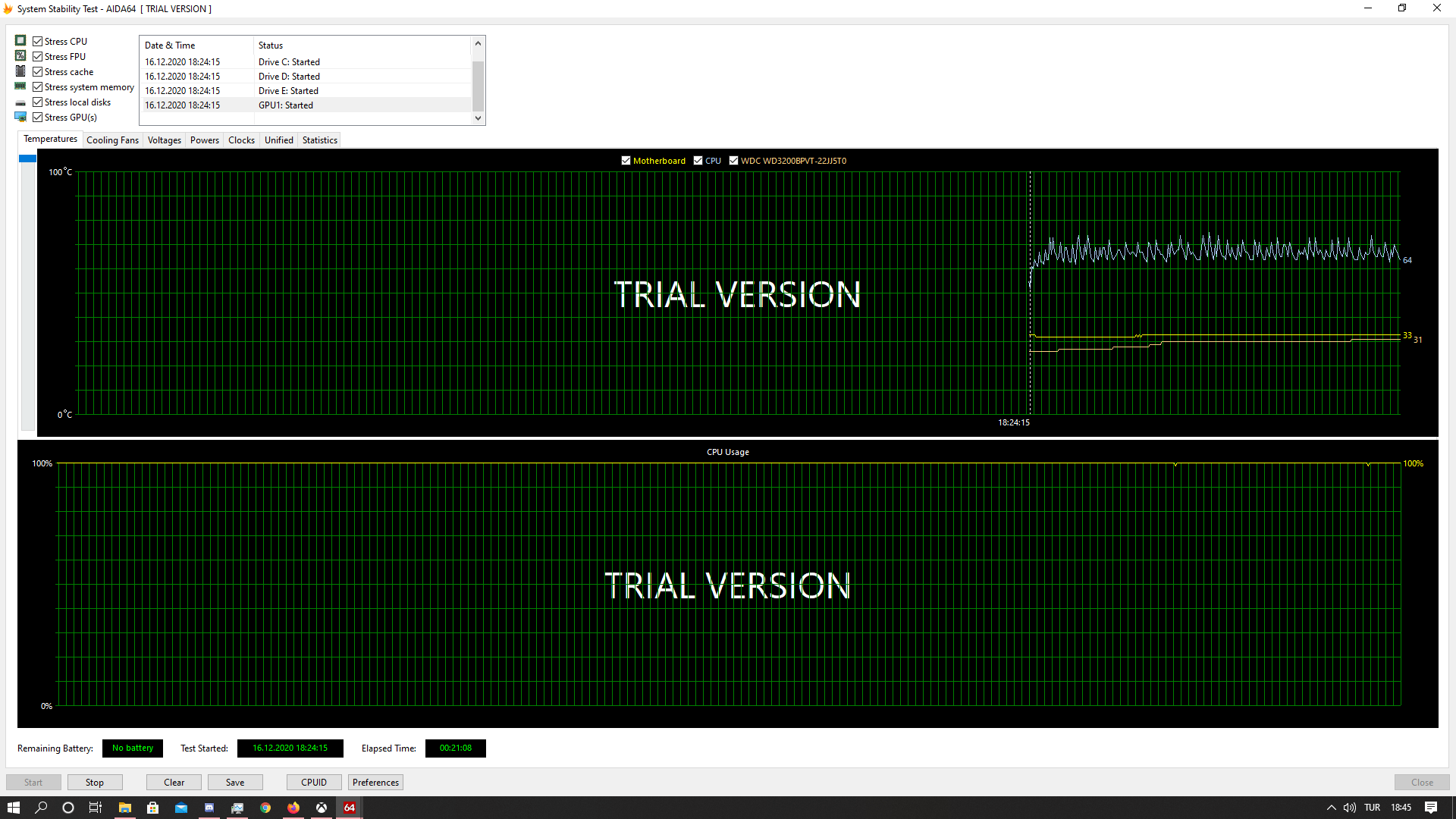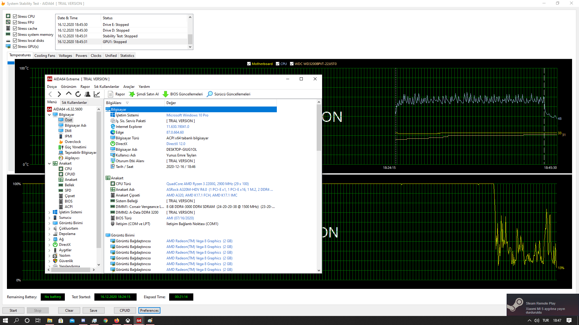 Aşağıya 20 dakikalık Aida64 testlerini ekledim.