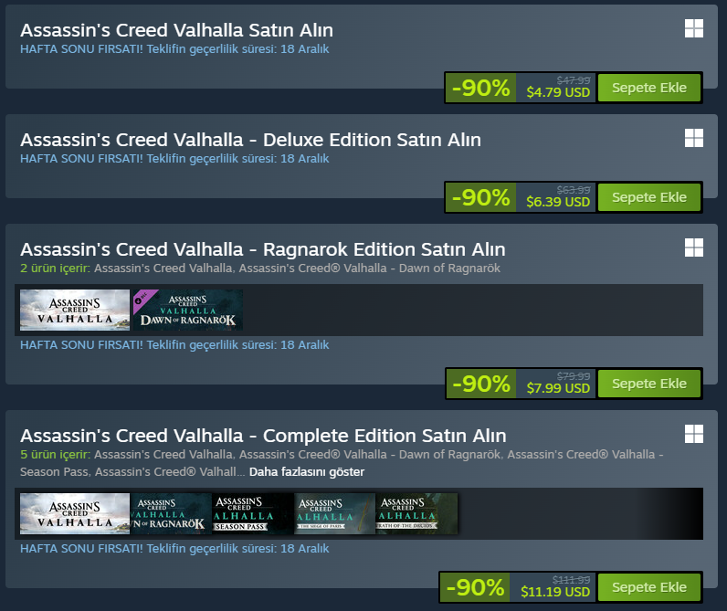 Helixo999 dedi: Hangi paket alınır sizce? Eki Görüntüle 2620807 Eki Görüntüle 2620808 Genişletmek için tıkla... DLC dahil olan Valhalla'yı al ama Epic'te daha ucuz olabilir oraya da bak.