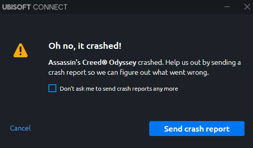 Assassin's Creed Odyssey oyununu satın aldım fakat başlamıyor. Ubisoft crash hatası veriyor.
