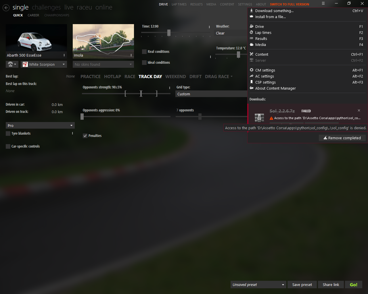 asilkan07 dedi: Assetto Corsa aldım sonra Online oynamak için content Manager indirdim ama modları kurarken şu hatayı alıyorum:Eki Görüntüle 2113242 Genişletmek için tıkla... Sol dosyasını bende atamıyorum nedense oyunun dosyalarına girip manuel olarak atmam lazım.
