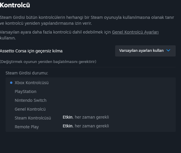 Assetto Corsa Gamepad'den sinyal verilmiyor