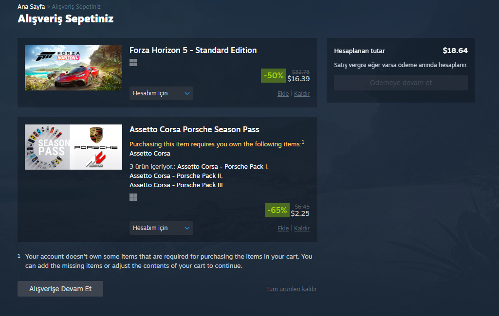 Q qpeer Picopat Katılım 29 Nisan 2024 Mesajlar 17 Daha fazla Cinsiyet Erkek 20 Haziran 2024 #1 Steam'de oyun alamıyorum. Hesapta 20 dolar var. Dosya Ekleri resim_2024-06-20_161932091.png 344,1 KB · Görüntüleme: 36