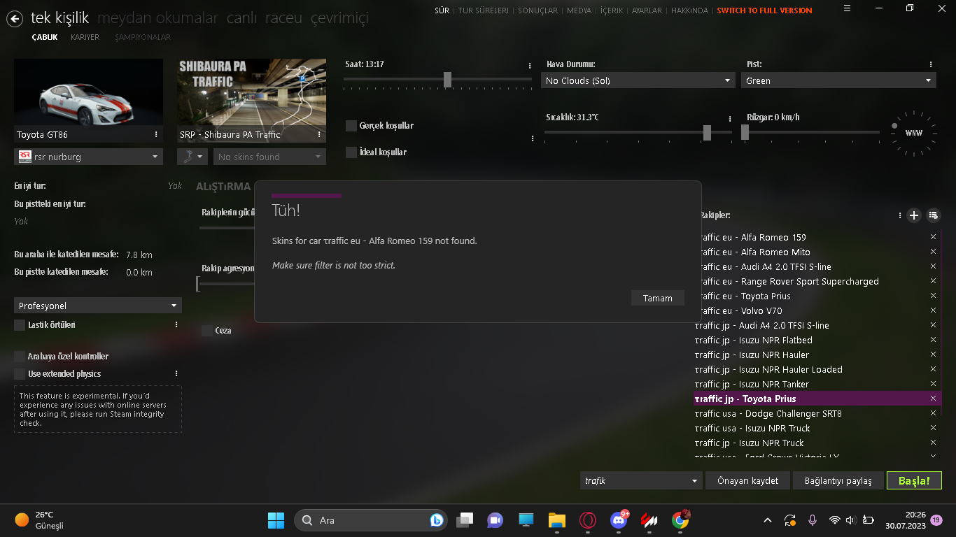 Belirtilen arabayı bulamamış, filtreden çıkartıp tekrar deneyin.Trafik moduna girmiyor, nasıl çözerim?
