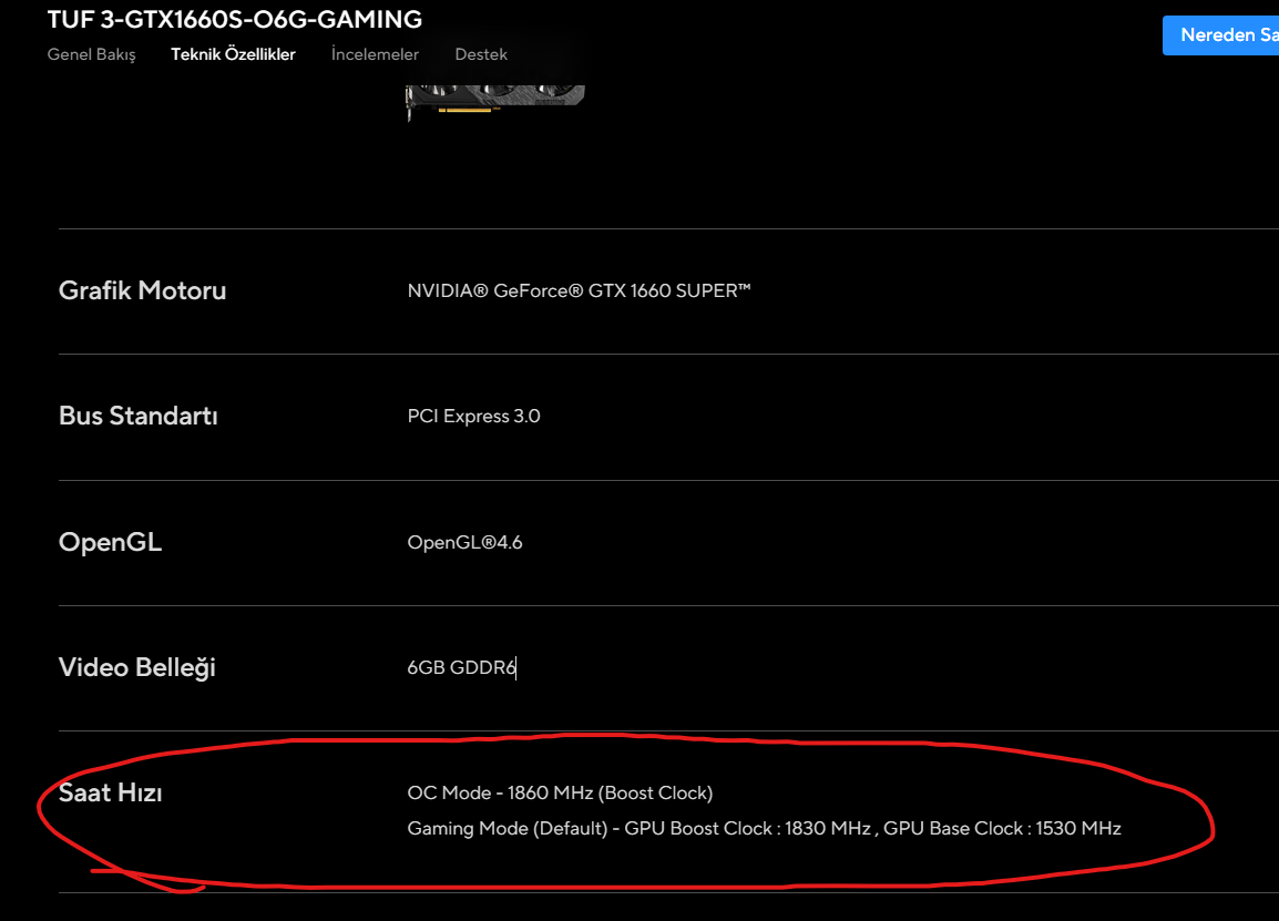 Arkadaşlar iyi akşamlar. Elimde ASUS 1660 Super 6 GB ekran kartı var. Merak ettiğim konu: GPU Z uygulamasında bu kartın orijinal GPU clock Memory Boost MHz değerleri nedir? Yardımcı olursanız çok sevinirim.
