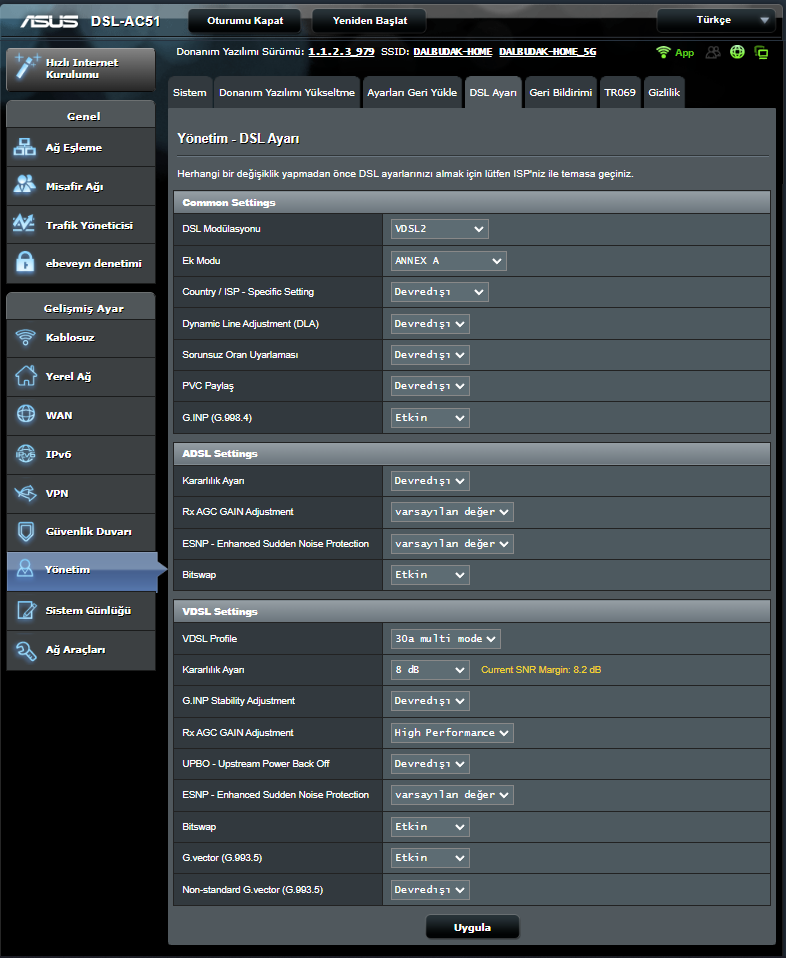 Bir de akşamları oluyor genelde sabahtan itibaren çok bir sıkıntı yaşamadım. Saat 9 olduğu zaman bir anormallik başlıyor sitelere vs. girememeye başlıyorum SNR değeri 4.000 olarak her saniye artmaya başlıyor.
