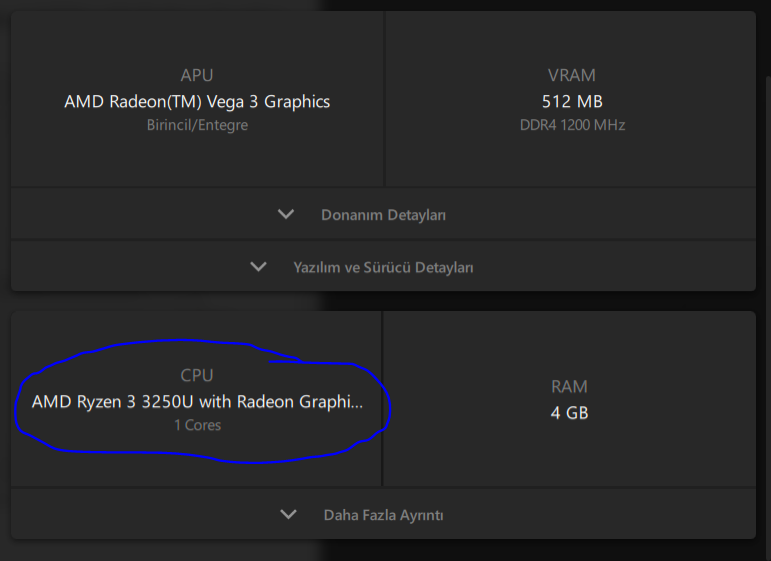 Ben ASUS marka D515DA-EJ819 model bir laptop aldım yaklaşık 4 gün önce, AMD Ryzen 3 3250U işlemciye sahip SSD 4 GB RAM Windows 10 işletim sistemine sahip. Ara ara oyun oynuyordum CS, Valorant gibi biraz fazla ısınıyordu 87 derece küsurata ulaşıyordu ve fan sesi yükseliyordu bayağı fakat herhangi bir sorun yoktu. Normalde bu işlemci 2 çekirdeğe 4'te mantıksal çekirdeğe sahip. Önceden de böyle gözüküyordu dün fark ettim ki görev yöneticisinde performans kısmında çekirdekler: 1 mantıksal işlemciler: 2 olarak değişmiş. MSConfig önyükleme ve gelişmiş seçeneklerde de önceden 4'e ayarlanabiliyorken dünden itibaren bu 2 olmuştu. Aygıt yöneticisinde işlemci olarak da 4 tane gösteriyor? AMD'nin kendi uygulaması Adrenalin Edition'da da 1 cores olarak gösteriyor CPU kısmında. Normalde bu işlemci 2 çekirdeğe sahip. Anlamadım bu işlemci yandı mı ben mi bir şey yaptım falan böyle bir şey nasıl oluyor? Bilginiz var mı? Kısaca yarıya düşmüş gibi gösteriyor hem mantıksal hem çekirdek.