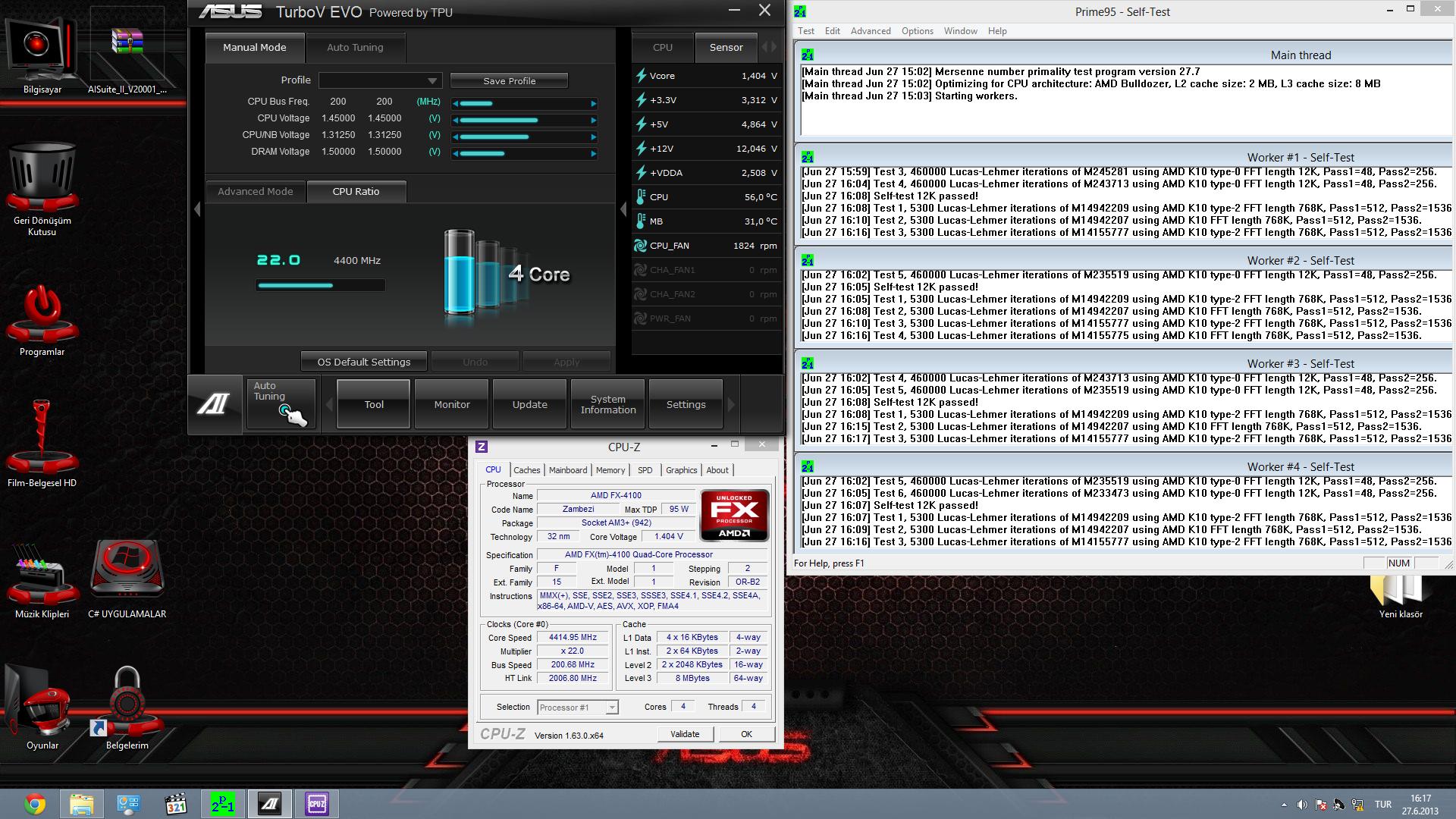 Aşağıdaki görsel benim sistemime ait, FX4100 işlemci ile 4,4GHZ hıza çıkılmış.