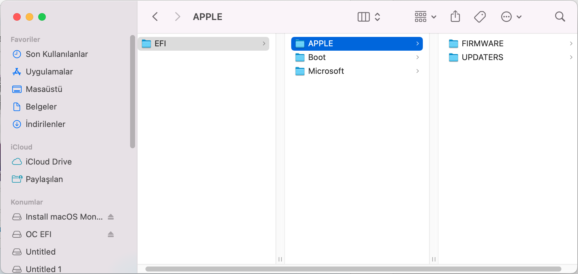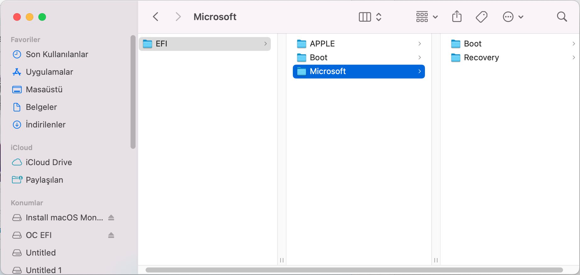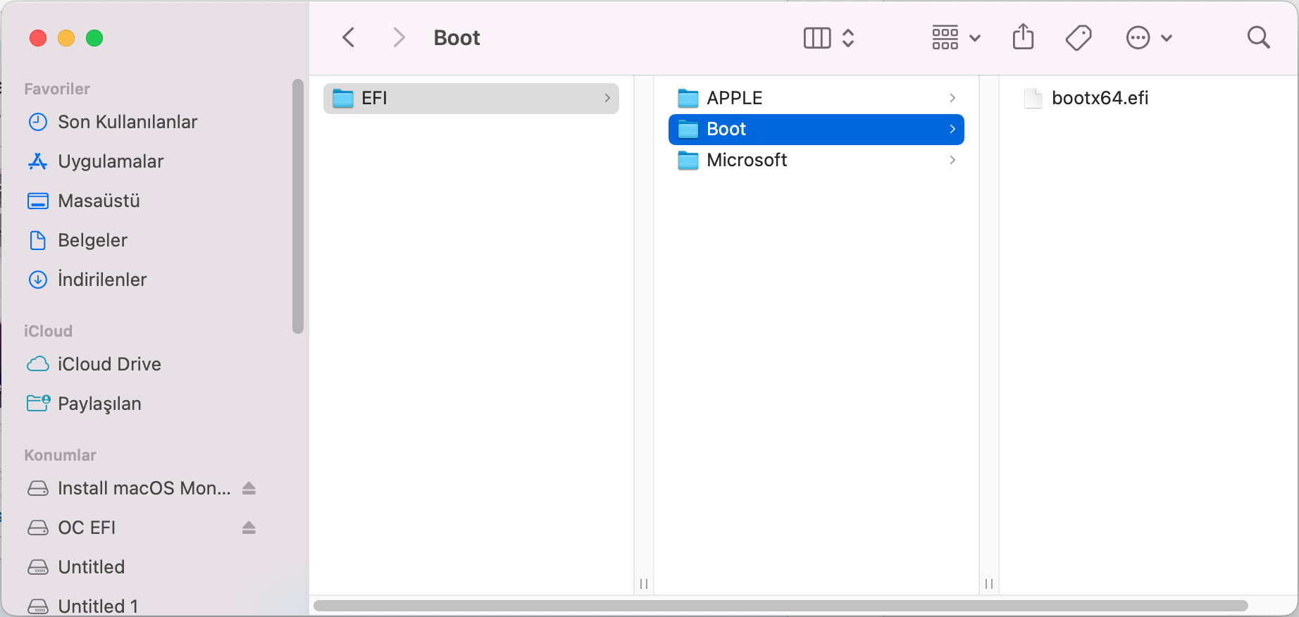 Untitled 4 label'i daha önce burada belirlediğim şekilde EFI idi. Gerçekten de OpenCore Configurator, Windows'un EFI bölümüne mi salça oluyor diye Windows'a geçip bu bölümün label'ini sildim. Ve şu an macOS'ta Untitled 4 olarak karşıma çıktı.
