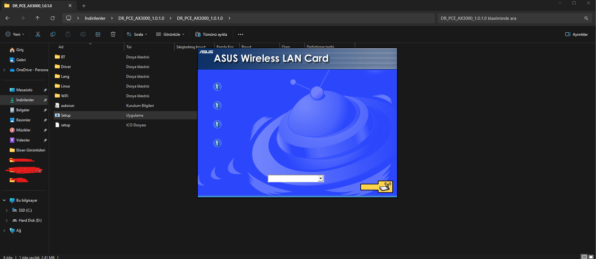 Adaptörün driverını kurmayı deniyorum, yazıları olmayan bir setup ekranı gözüküyor. Nasıl hallederim, bir şeyi yanlış mı yapıyorum? Bir de bundan başka bilmediğim, yapmam gereken bir olay varsa başka bir driver vs. indirmek gibi, bilen yazabilir mi? Ben o ASUS driverını yapamayınca BT yazan dosyadan Intel'in Windows (2 ve 3. resimde gösterdim) bir şeyini kurdum sadece, onun dışında bir şey kuramadım bahsettiğim sorundan mutevellit.