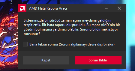Aynı ekran kartıyla bu sorunu bende alıyorum ve sürüm değiştirerek çözmüştüm. Hatayla karşılaşmadığım sürüm 21.5.1 sürümüydü. Sizde sürüm değiştirerek en stabil sürümü bulmayı deneyin. Son yayınlanan WHQL sürücüsünü kurun eğer sorun devam ederse sürüm değiştirin.