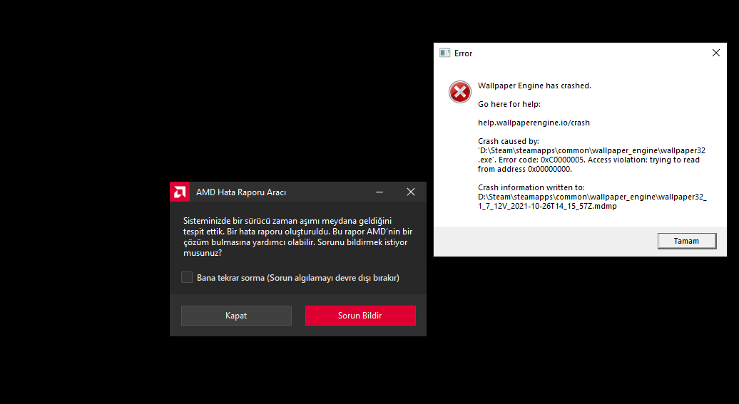 hem aimlab hemde wallpaper engine kapandı ve ekran da 1-2 kez siyah oldu bu şekilde