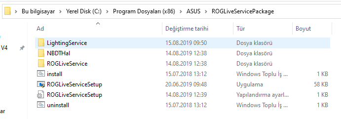 C:\Program files (x86)\ASUS\ROGLiveServicePackage- Bu dosya içindeki her şeyi silin ve bu bağlantı üzerinden indirdiğiniz RAR uzantısını açın.