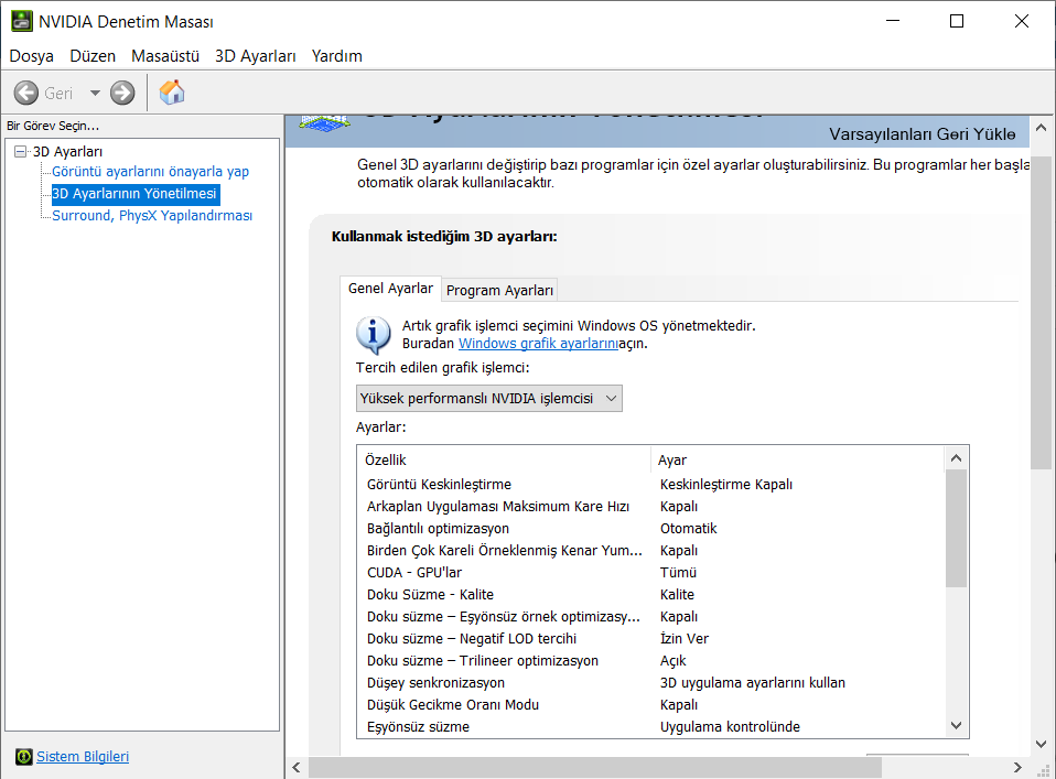 - Driverlarım güncel, en son sürüm kullanıyorum.
