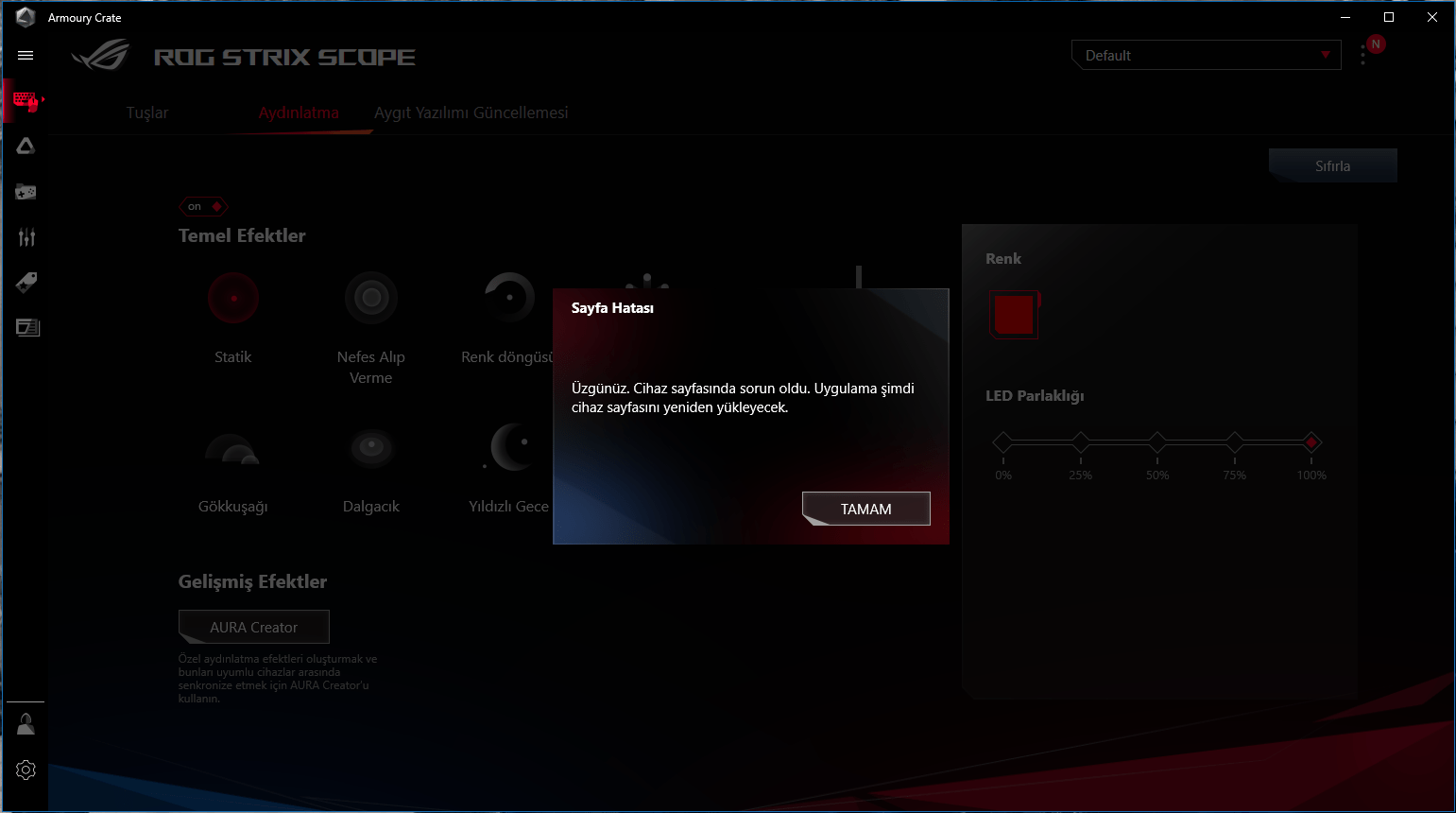 Düne kadar hiçbir sorun olmayan klavyede bugün uygulama üzerinden kontrol yapamıyorum. Aura Sync uygulamalarından aygıtı eşitleyip kaydettiğim aydınlatma profilini etkinleştiremiyorum. Uygulamaları kaldırıp tekrar yükledim fakat hiçbir değişiklik olmadı. Bunun sebebi ne olabilir?
