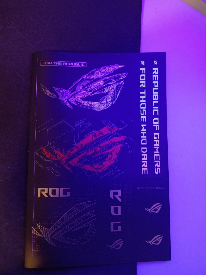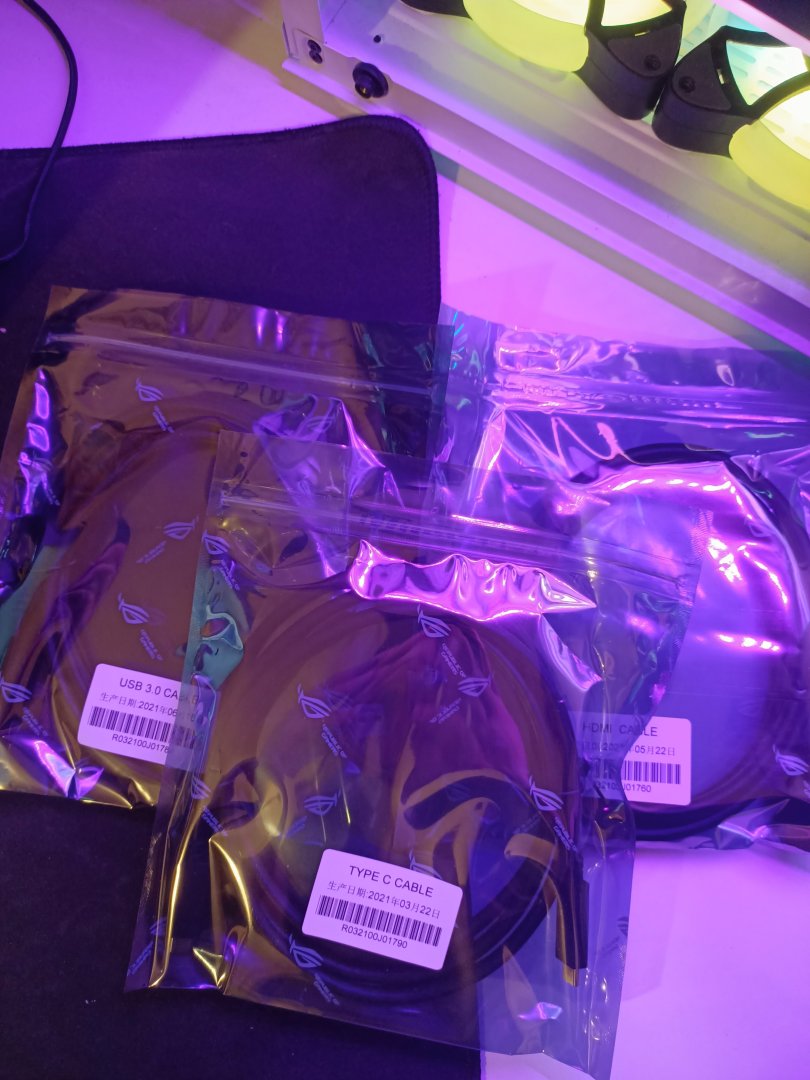 Aksesuar kutusunun içeriği ROG sticker kağıdı Type-C kablo HDMI 1.4 kablosu ve USB aktarım kablosu şeklinde idi.