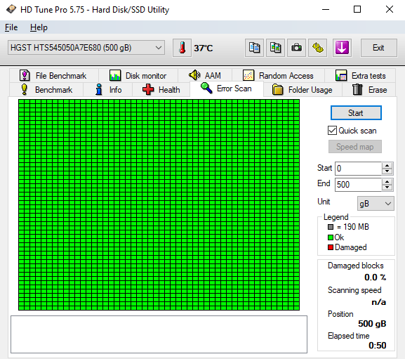 HDD sentinel ile sağlığa bakın ve quick scan hemen genelleme yaparak gösteriir, quick scan olmadan tarayın bir de.