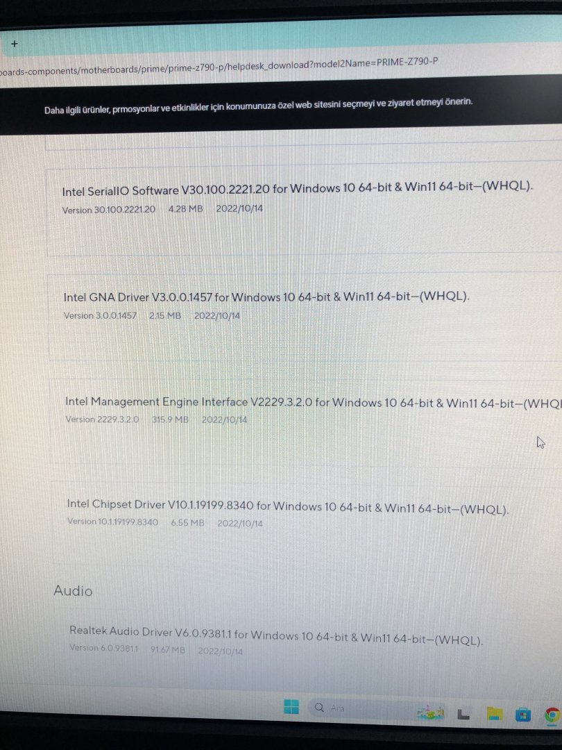 ASUS Z790-P anakart sürücüsü WHQL mi kurulmalı?