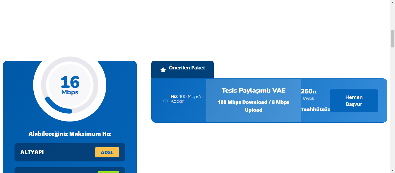 Arkadaşlar altyapım 16Mbps destekliyor ve bu benim için aşırı yetersiz. Araştırdım, Superbox fiyatları aşırı uçuk ve Atlantisnet diye bir yer buldum ve dediklerine göre altyapı gerektirmeksizin 100Mbps alabilirmişim. Oradan da altyapımı sorguladım, böyle bir sonuç verdi. Sizce bu resimden anlamam gereken şey maksimum 16Mbps alabileceğim mi yoksa 100Mbps kullanabileceğim mi?