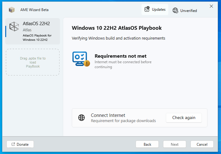 - Atlas OS üzerinden AME Wizard ve Atlas Playbook indiriyoruz.