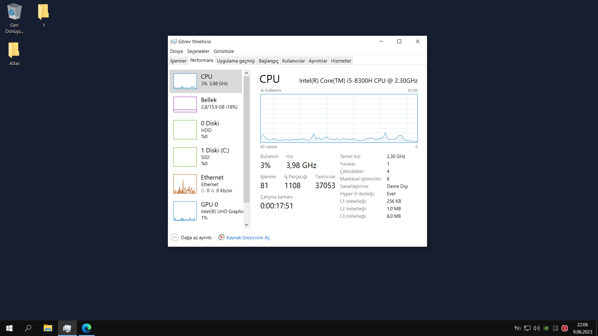İlk olarak boştaki kaynak kullanımından bahsetmek istiyorum (Ben Windows Defender kullanmadığım için silmiştim önceden)