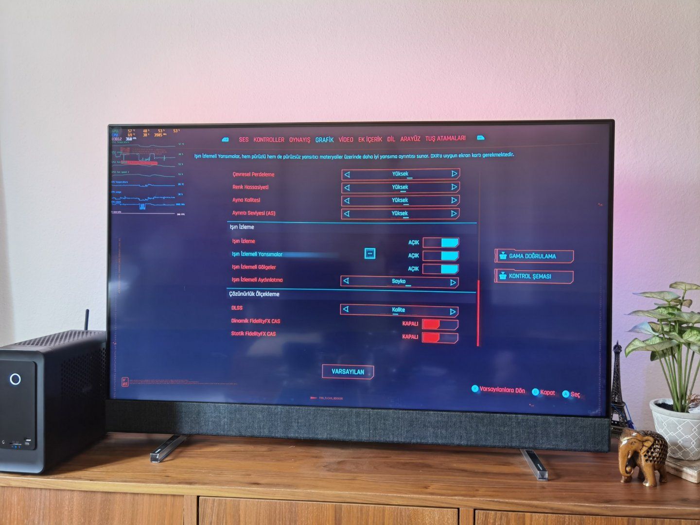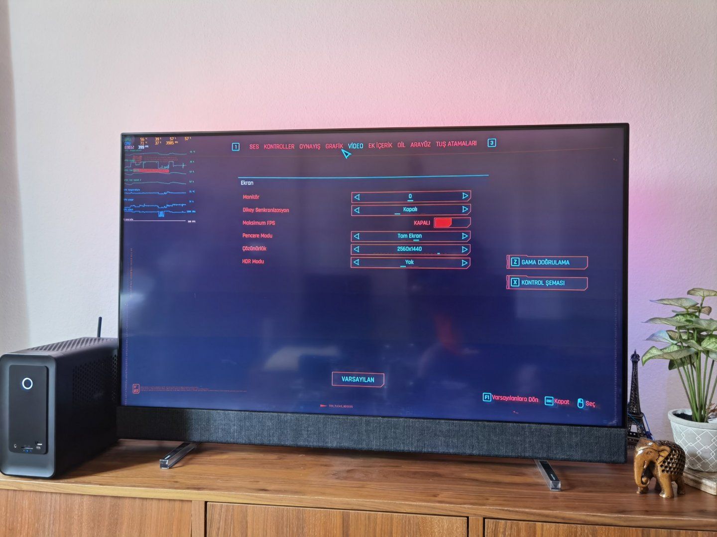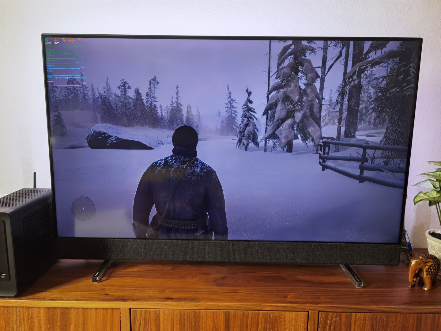 Gelelim oyun testlerimize. Gerek boyut kıyaslaması olsun, gerekse de 4K sonuçlarını görebilelim diye PC'yi geçici olarak TV'nin hemen yanına kurdum. TV 50 inch Philips 50PUS8804 model 4K Android TV. HDR10, hlg, Dolby vision ve Dolby Atmos desteği ile bowers & wilkins 2+1 dahili ses sistemi var. Tek sıkıntı 60Hz bir TV ancak zaten yeni konsollar da 4K 60 FPS için ölçeklendirildiğinden benim için fazla bir fark yaratmıyor.