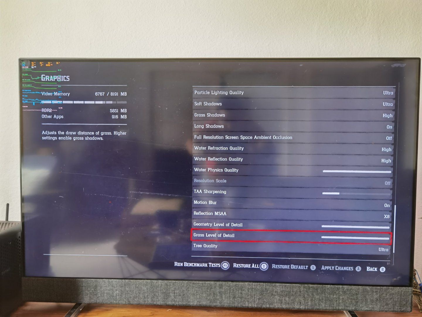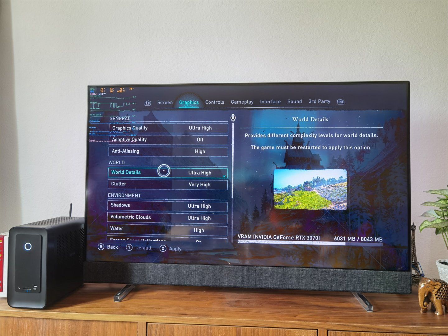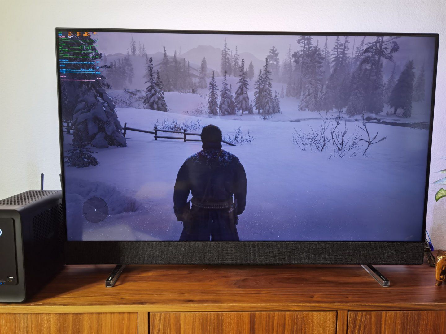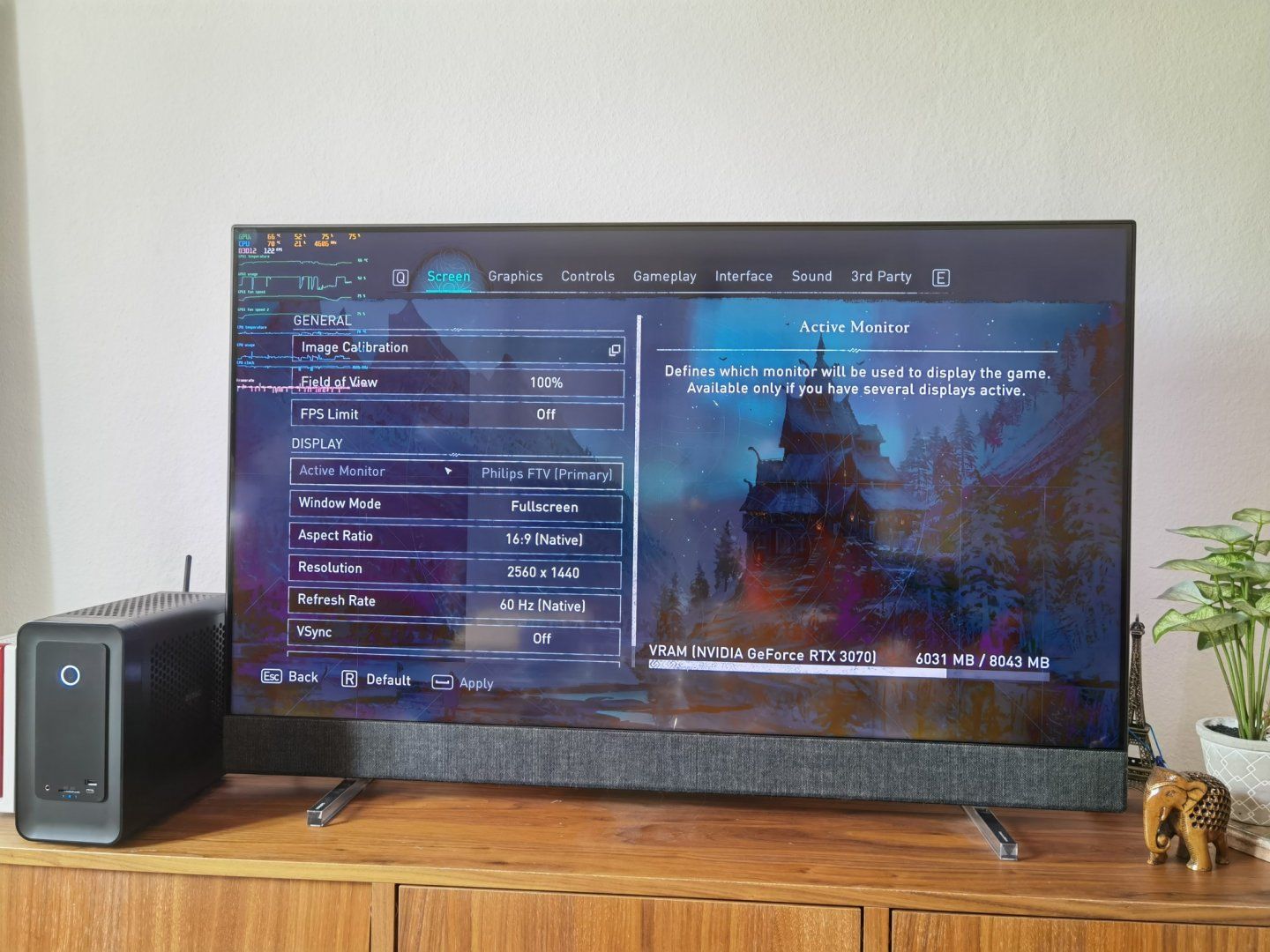 Gelelim oyun testlerimize. Gerek boyut kıyaslaması olsun, gerekse de 4K sonuçlarını görebilelim diye PC'yi geçici olarak TV'nin hemen yanına kurdum. TV 50 inch Philips 50PUS8804 model 4K Android TV. HDR10, hlg, Dolby vision ve Dolby Atmos desteği ile bowers & wilkins 2+1 dahili ses sistemi var. Tek sıkıntı 60Hz bir TV ancak zaten yeni konsollar da 4K 60 FPS için ölçeklendirildiğinden benim için fazla bir fark yaratmıyor.