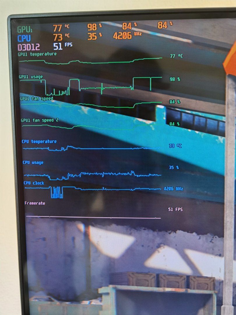 Çözünürlüğü 4K'dan 2K'ya düşürüp tüm ayarları yine en sona dayadım, bu haliyle 50-55 FPS'leri gördü. Bu oyunda bu kasa ile ya 4K medium ya da 2K High-Ultra arası akıcı olarak oynanabilir diyebiliriz.