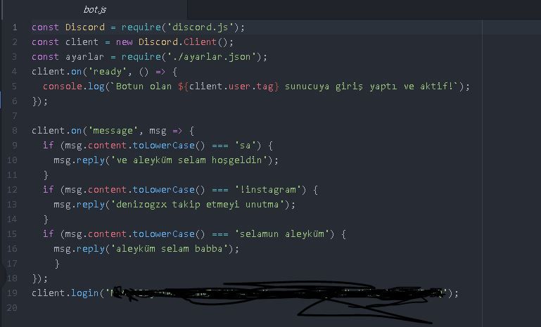 Olmadı.ayarlar.json'a token girince diğer kısma girmiyoruz diye biliyorum.